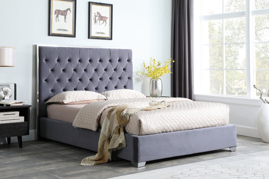 Color: Gray Velvet/ Chrome Material: Velvet Dimensions:Queen 55" Height King 55" Height