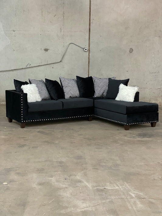 Material: VelvetIncludes all pillows as shown. Chaise: 75L x 34w x37HLAF Sofa: 77L x 34w x...