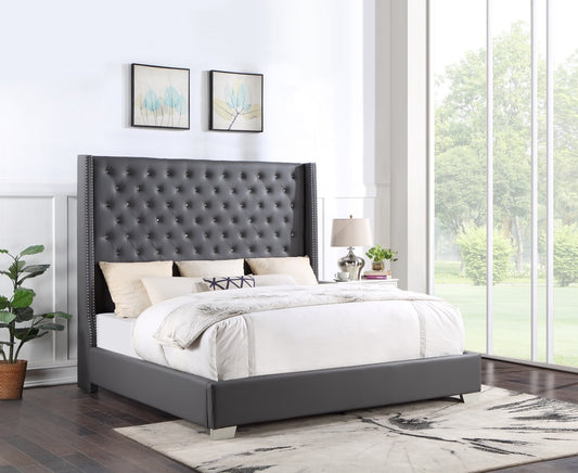 Color: GreyDescription: 6FT Tall upholstered headboard covered in Grey Faux Leather with Diamonds