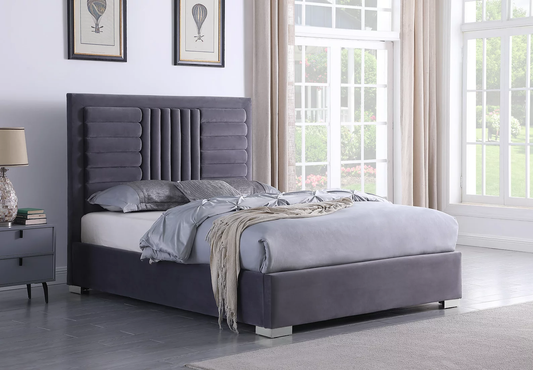 Color: Gray Velvet/ChromeMaterial: Velvet Dimensions:Queen 55" Height King 55" Height