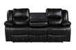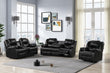 Description: Carter 3pc reclining set offered in leather gel with contrast stitching, The Sofa features drop down table with cup holders, loveseat with storage console.