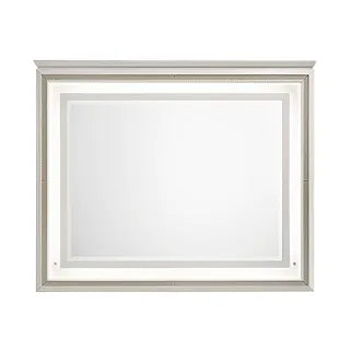 Features: Padded LED Headboard, LED Mirror, Acrylic Legs, Gold Accent Decor, Pattern Panels, & Accent Handles