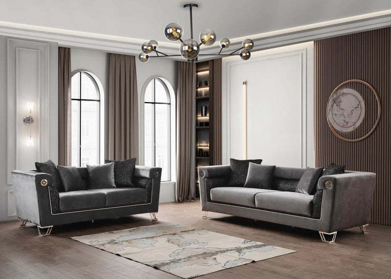 Diamond Gray Velvet Sofa & Loveseat