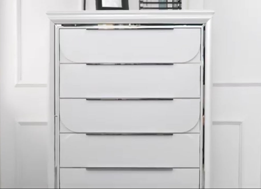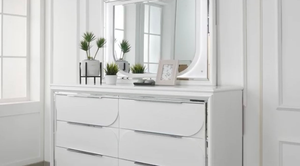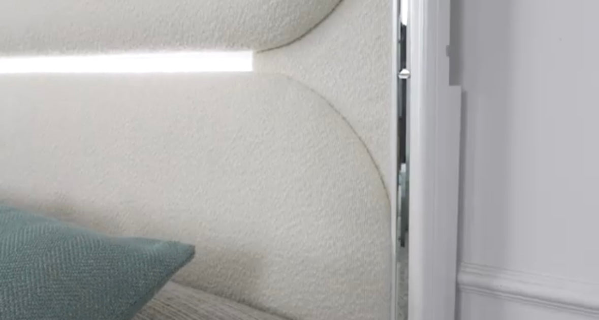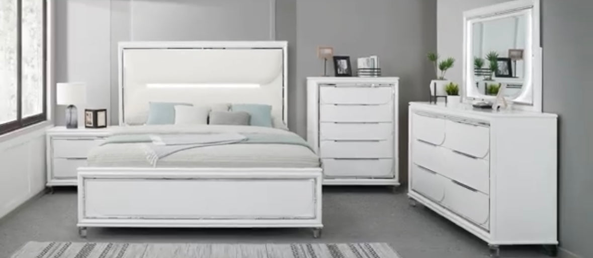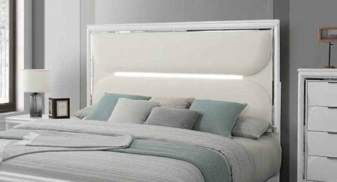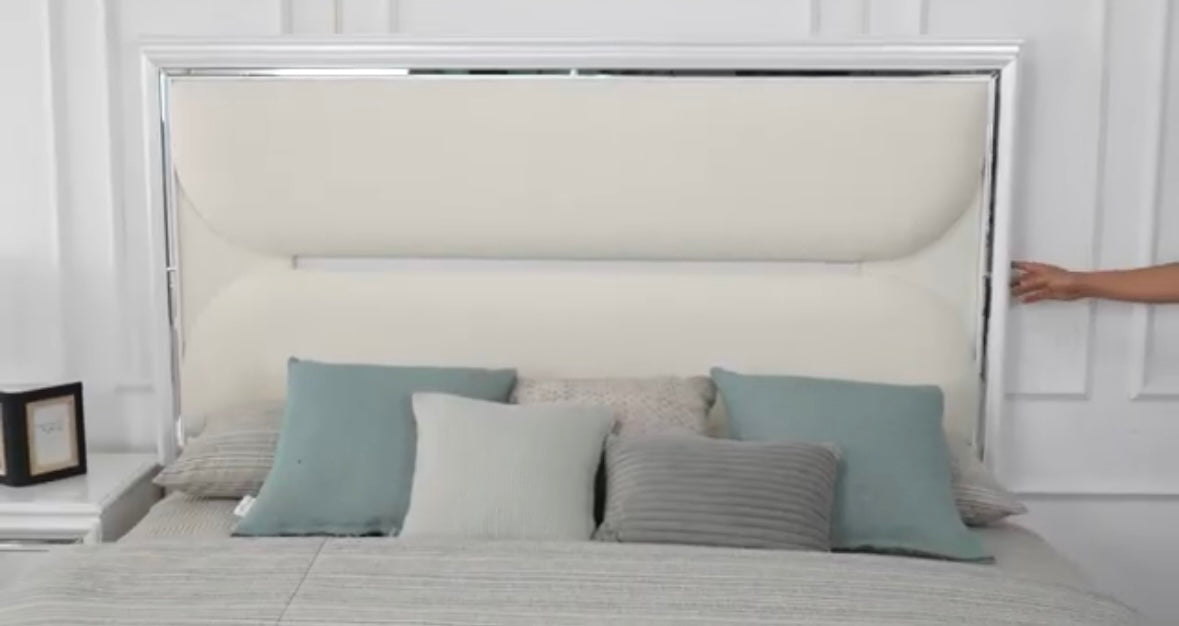 •Pearl White Finish With LED Feature In Headboard & Mirror