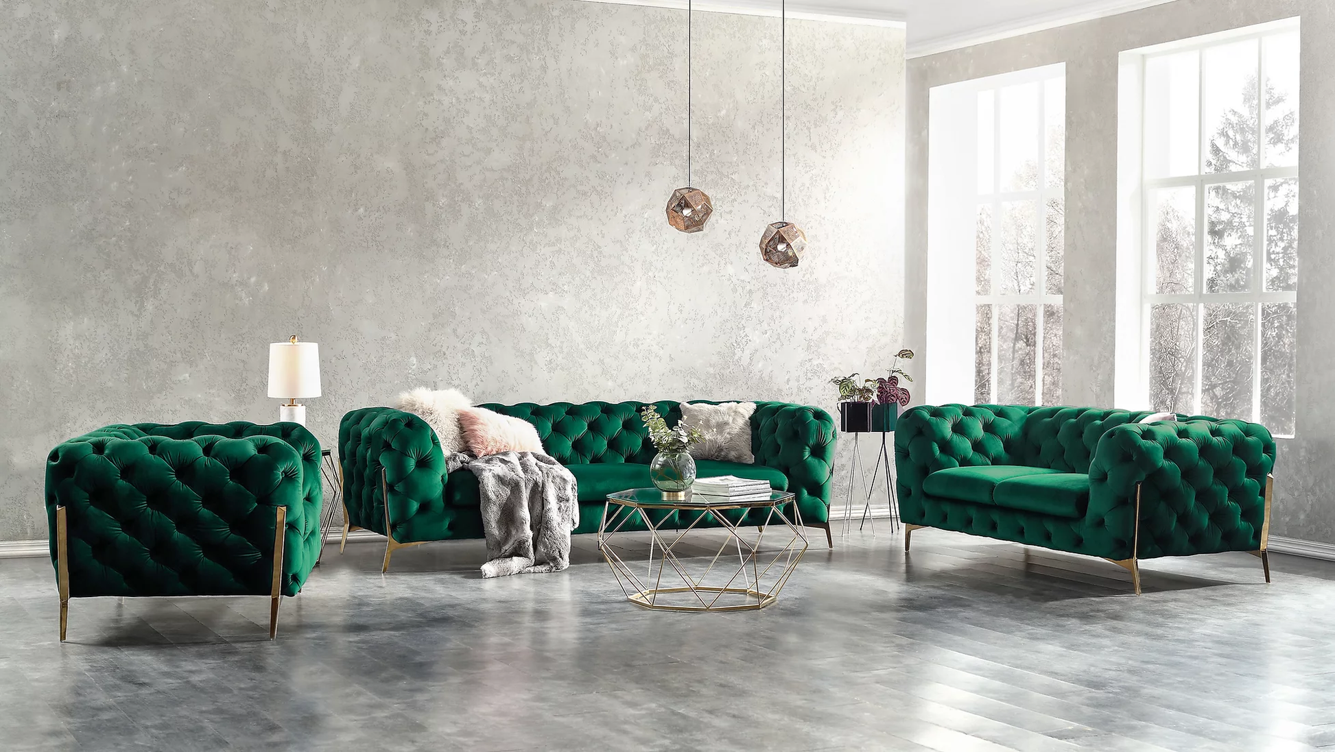 Lori Green Tufted Velvet 3-PC Sofa Set