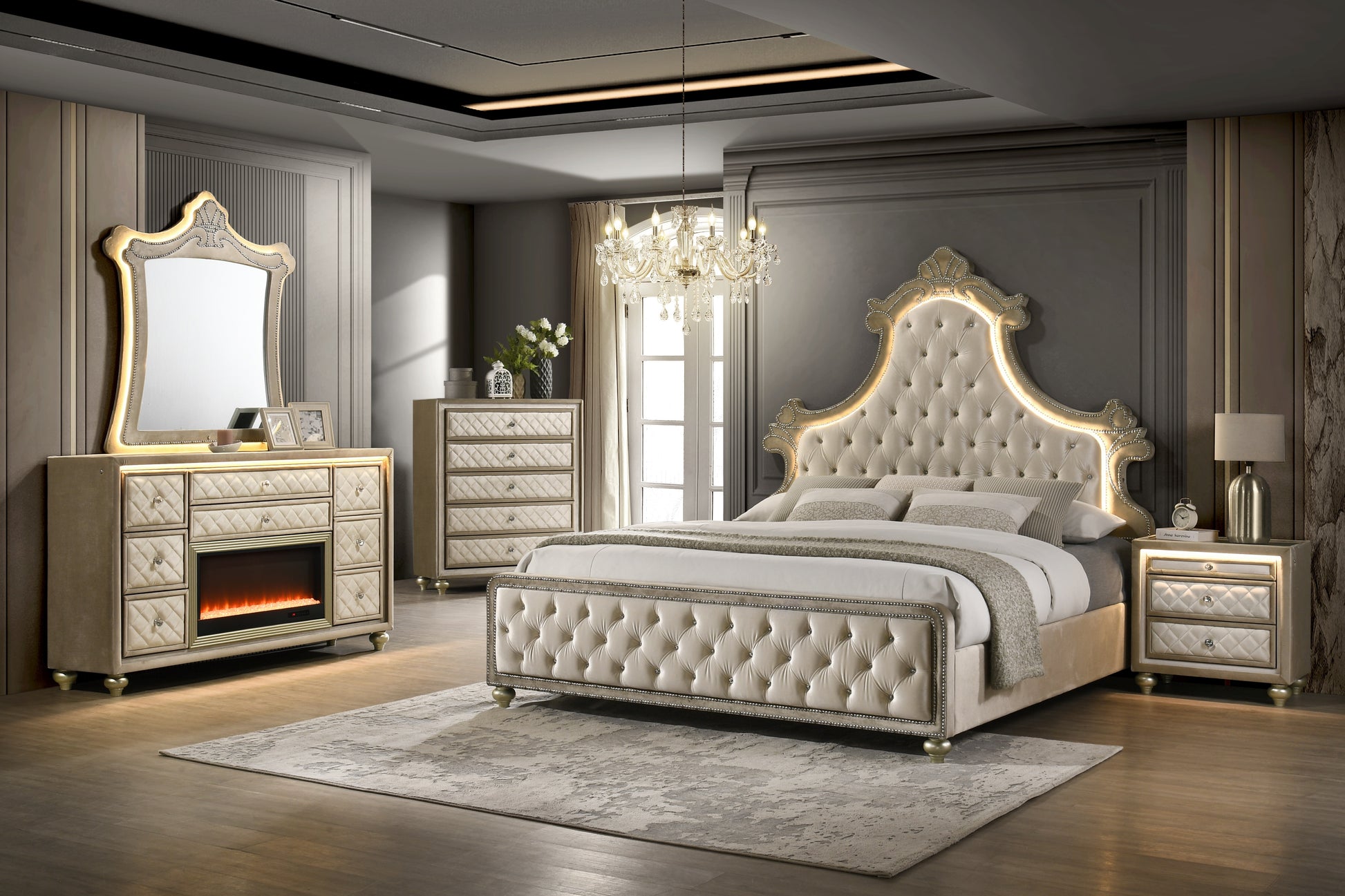 - LED Lights on Headboard, Nightstand, Dresser & Mirror